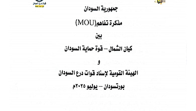 (خاص سودان 4نيوز تنشر مذكرة التفاهم بين كيان الشمال والهيئة القومية لاستاد قوات درع السودان*
