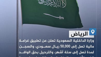 *السعودية: تطبيق غرامة مالية تصل إلى 50.000 ريال بحق الوافد الذي يتأخر عن المغادرة عقب انتهاء صلاحية تأشيرة الدخول الممنوحة له*