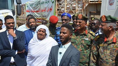 *وزيرة الصناعة والتجارة والمستشار المالي للقائد العام يدشنان قافلة مجموعة الذهبي لدعم القوات المسلحة*