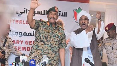*البرهان في عمومية اتحاد الكرة في بورتسودان ومعتصم جعفر رئيس اتحاد الكرة يستقبله على طريقته الخاصة*
