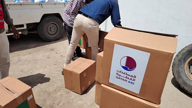 *الهلال الأحمر القطري : يوزع سلال غذائية للإعلاميين النازحين*