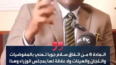 *بعد رفض العدل والمساواة حل الحكومة بناء عليها.. رئيس مسار الشمال باتفاق جوبا للسلام محمد سيداحمد الجكومي في تدوينة على فيسبوك : المادة 8 من اتفاق سلام جوبا تعني بالمفوضيات واللجان والهيئات ولا علاقة لها بمجلس الوزراء*