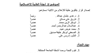 *مدير جامعة السودان للعلوم والتكنولوجيا بروفيسور د. عيسي بشير يصدر قرارا بتعين خلية أعلامية للجامعة برئاسة د. هدي عثمان*