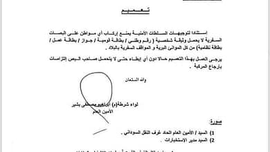 *اتحاد غرف النقل السوداني، يصدر ، تعميماً أمنياً عاجلاً بمنع إركاب أي مواطن على البصات السفرية ما لم يكن حاملاً وثيقة إثبات هوية*