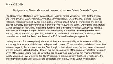 *الخارجية الأمريكية: واشنطن تدرج وزيرا سودانيا سابقا في برنامج مكافآت جرائم الحرب*