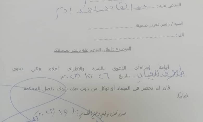 تم النشر يوم ٢٠٢٣/١٢/١٠م جمهورية السودان السلطة القضائية محكمة الأحوال الشخصية مدني قضية نمرة ٢١٧٨/ق/دائرة شرعية ٢٠٢٣م التاريخ ٢٠٢٣/١٢/١٠م المدعي/فايزه الامين التجاني المدعي عليه/بابكر محمد على أحمد السيد/رئيس تحرير سودان 4نيوز الموضوع /إعلان المدعي عليه بالنشر بصحيفتكم