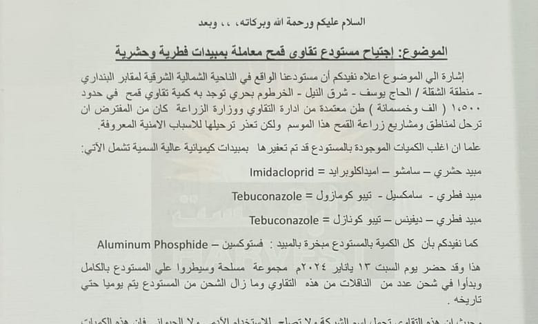 *تحذير بعد اجتياح مستودع تقاوي قمح معاملة بمبيدات فطرية وحشرية*