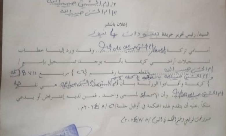 *محكمة كريمة للأحوال الشخصية..تركه المرحومه ام الحسين حبيب الله على الحاج*