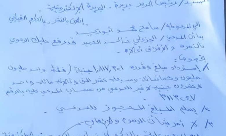 *التاريخ 26/3/2025 السلطه القضائية. محكمة ود مدني الجزئيه .المدعي عليه الجزولي خالد العبيد ضد المدعي عليه سامح محمد ابو زيد . اعلان بالنشر بالحكم الغيابي..الي المدعي عليه سامح محمد ابو زيد*