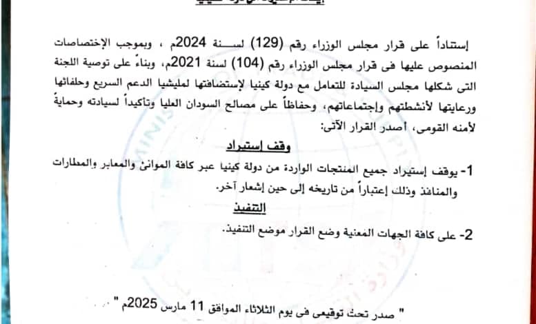 *قرار لمجلس الوزارء ووزير التجارة بوقف استيراد اي منتج كيني*
