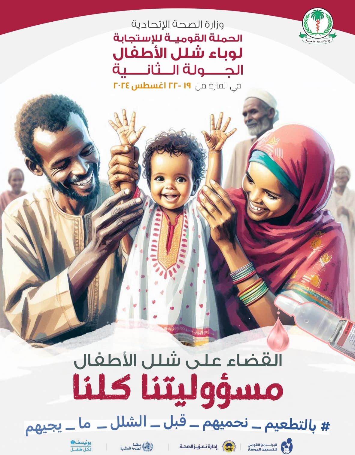 اعلن رئيس الغرفة الإتحادية لمتابعة سير حملة شلل الأطفال في جولتها الثانية محمد الحسين الحاج، مواصلة حملة التطعيم ضد شلل الأطفال اليوم الجمعة وغد السبت بولايتي كسلا والقضارف والتي توقفت فيهما ليومين بسبب الأمطار، وذلك حرصا من الوزارة للوصول لكل الأطفال المستهدفين وزيادة المناعة بينهم، مطالبا الأسر في الولايتين بالحرص على تطعيم أطفالهم، وكذلك الحرص على التطعيم الروتيني، لافتا إلى اكتمالها في باقي الولايات الثلاث الشمالية، البحر الأحمر ونهر النيل امس الخميس وفقا للتاريخ المقرر مسبقا.