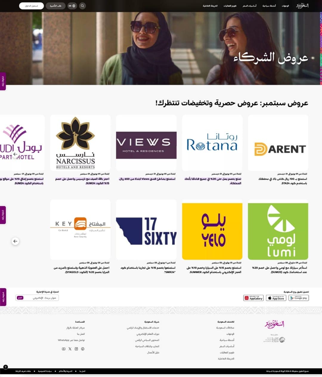 يشهد شهر سبتمبر الكشف عن مزيد من العروض الحصرية بالتعاون مع نخبة من الشركاء الرائدين في قطاعي السياحة والضيافة في مختلف أنحاء المملكة. حيث تهدف العروض إلى تعزيز السياحة في السعودية وتوفير تجارب استثنائية للزوار من مختلف الوجهات بأسعار تنافسية. وتتيح هذه العروض الفريدة فرصة استكشاف جمال الوجهات السعودية المختلفة والاستمتاع بتنوعها الثقافي ومعالمها السياحية المميزة.
