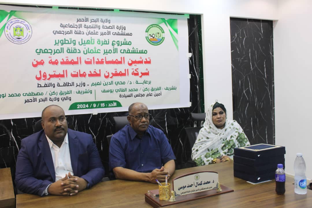دشن وإلي البحر الأحمر المكلف الفريق ركن مصطفى محمد نور مساء اليوم الدعم المقدم من شركة المقرن لخدمات البترول في اطار مساهمة الشركة فى نفرة تطوير وتاهيل مستشفى الأمير عثمان دقنة المرجعي ببورتسودان .