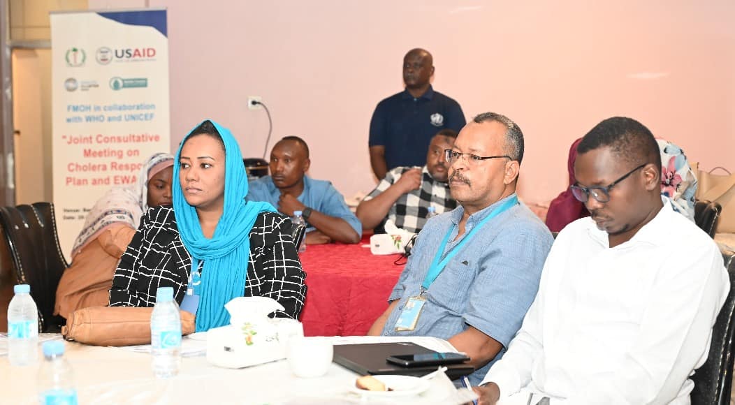 اكدت وزارة الصحة الاتحادية على التنسيق الكامل مع المنظمات العاملة في مجابهة وباء الكوليرا (الصحة العالمية، واليونسيف) والعمل على اعداد خطة متكاملة تدعم التدخلات التي تمت بالولايات المتاثرة والعمل على متابعة التقارير لسد الفجوات .