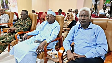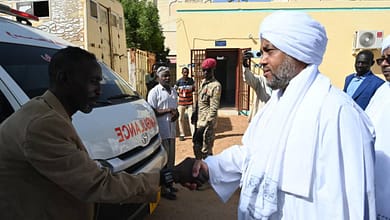 والقافلة برئاسة اللواء د م أمير سليمان فضل المولي رئيس اللجنه العليا للتوجيه بوادي سيدنا العسكريه واللواء د عبد الرحمن الجعلي علي نائب رئيس اللجنه واعضاء اللجنه المكونه من القوات المسلحة وجهاز المخابرات والمقاومه الشعبيه لتجار صابرين