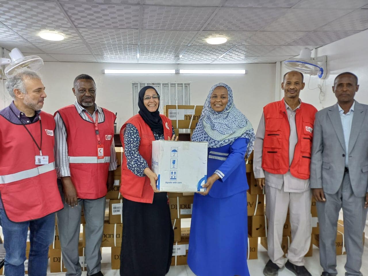 سلم  فرع البحر الأحمر ظهر اليوم وزارة الصحة الولائية كميات من المحاليل الوريدية و المضادات الحيوية للمصابين بمرض الكوليرا إضافة الي مواد اصحاح  البيئة ،تسلمتها الدكتورة/ احلام عبد الرسول وزيرة الصحة ولاية البحر الأحمر بحضور الأستاذة/ عايدة السيد الأمين العام للجمعية و الاستاذ/ اونور ابو علي المدير التنفيذي للفرع وعدد من مديري الادارات بالأمانة العامة للجمعية  .