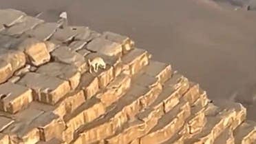 أصبح الأشهر بالعالم.. شاهد كلباً يتجول فوق قمة الهرم