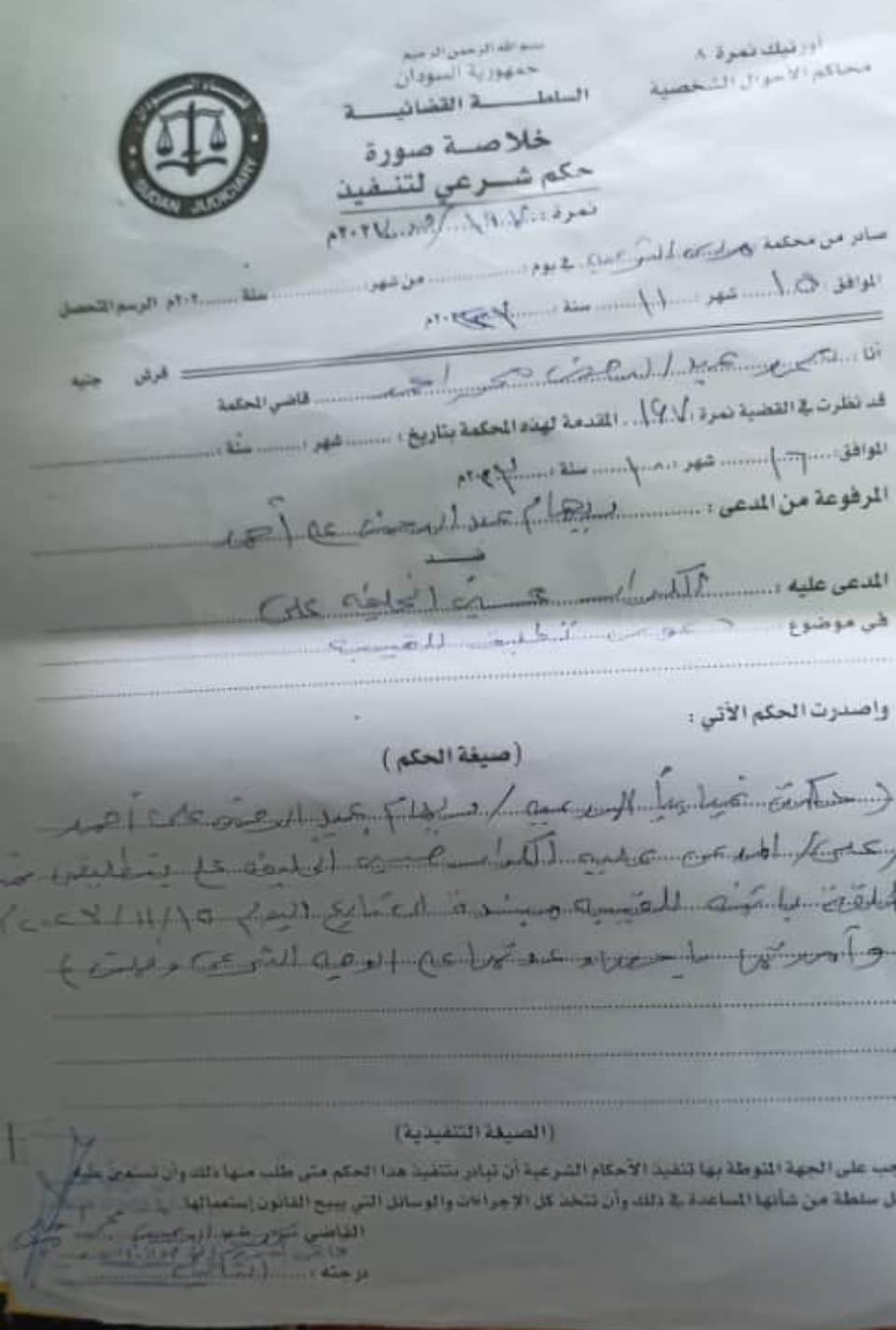محمد عبد الرحمن محمد احمد قاضي الأحوال الشخصية مروي الثانية.