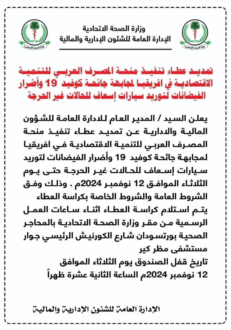 * إعلان.. وزارة الصحة الاتحادية تمديد عطاء*