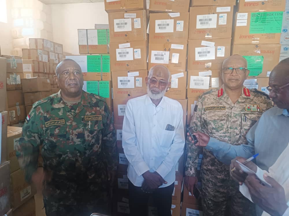 من جانبه ذكر نائب المدير العام لوزارة الصحة دكتور طارق العجوة أنهم يدشنون 50 طنا ومجموعة من الأدوية المتنوعة وأجهزة ومعدات للعظام والعناية وبنك الدم وغسيل الكلى، وسوف يتم توزيعها في المستشفى والمتحركات، وحيا دكتور طارق اهتمام حكومة الولاية وعلى رأسها والي الولاية ومدير عام وزارة الصحة بالولاية ووقوف الجيش الأبيض في خندق القوات المسلحة.