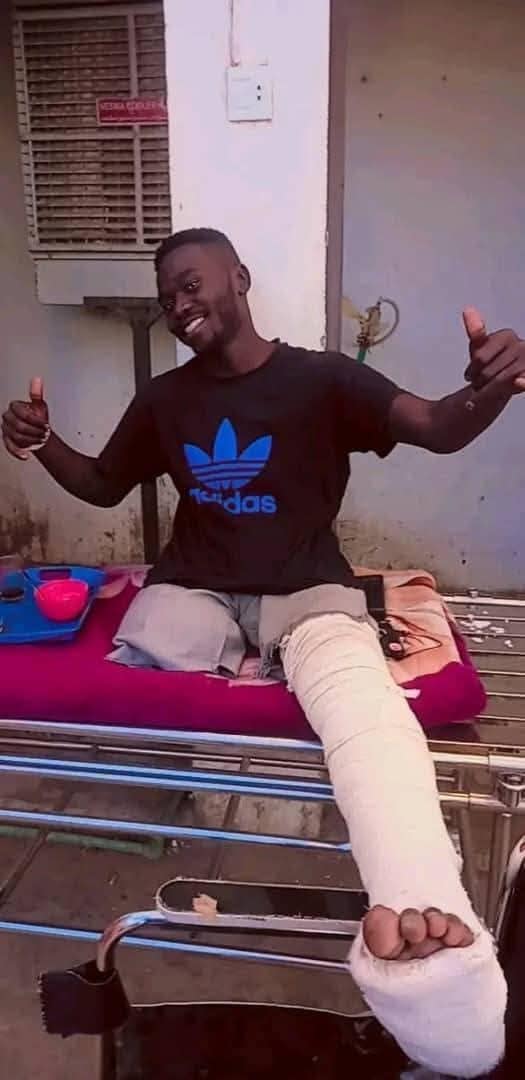 استلقى على ظهره فاقدا الوعي ، لم يفق إلا في المشفى ، وكانو قد قررو له عمليه بتر لقدمه.