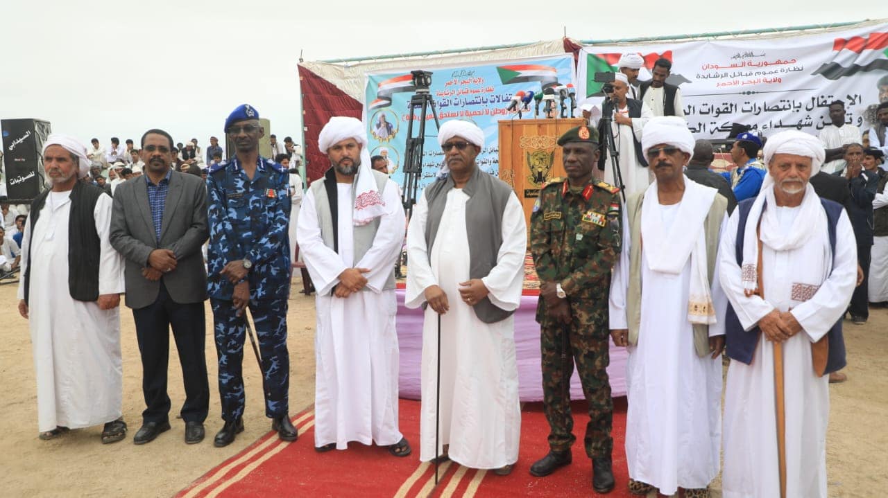 وقال مصطفى لدى مخاطبته الاحتفال الذي نظمته نظارة عموم الرشايدة بولاية البحر الأحمر احتفالاً بانتصار القوات المسلحة وتابين شهداء معركة الكرامة، من بينهم الشهيد أحمد مسعود الرطيخي الرشيدي، وتكريم الضباط من القوات المسلحة والعائدين من ساحات القتال، وذلك بحضور قائد منطقة البحر الأحمر ومدير شرطة الولاية ومدير مخابرات ولاية البحر الأحمر، أن القوات المسلحة والقوات الأخرى تعمل بصورة كبيرة على القضاء على التمرد واستعادة المناطق التي سيطرت عليها الميليشيا، وأضاف: “نطمئنكم أن القوات المسلحة تعمل في جميع المحاور وتتقدم في كل المحاور”.