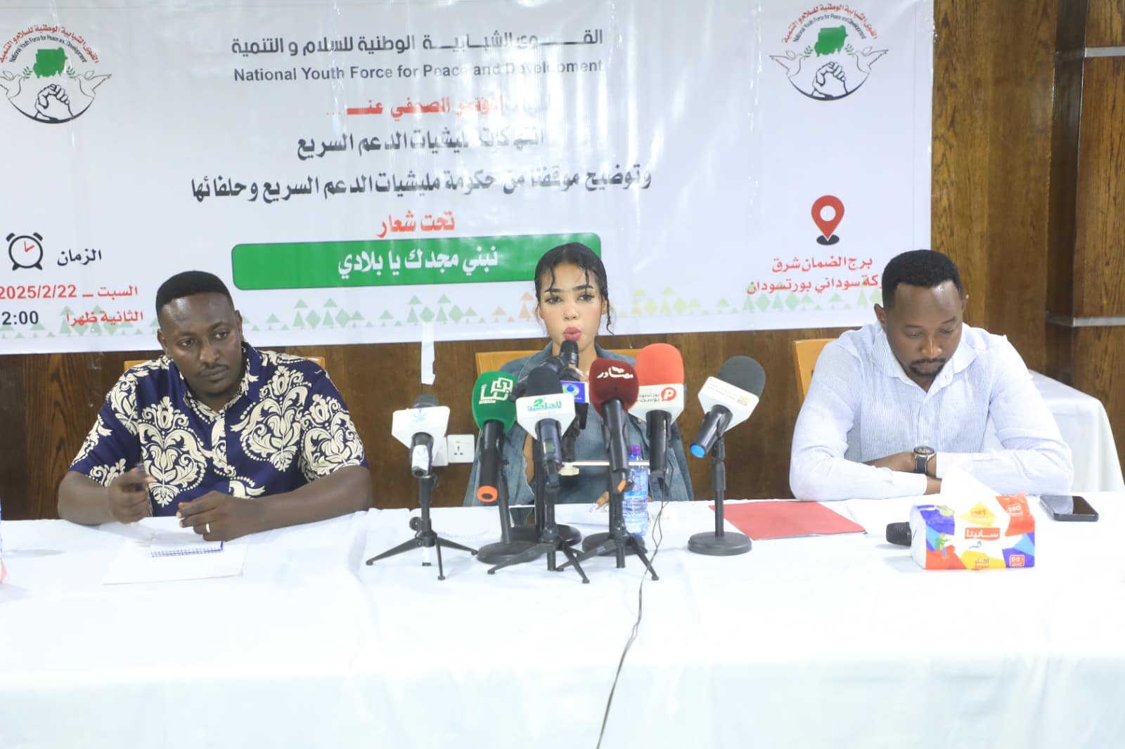 أكدت القوى الشبابية الوطنية للسلام والتنمية إدانتها للانتهاكات التي تمارسها ميليشيا الدعم السريع، مشيرة إلى رفضها لأي قرار لتقسيم السودان من خلال تشكيل حكومة موازية في كينيا، واصفة الاعتداء الذي تم من قبل الميليشيا على مناطق مختلفة من البلاد. وأشارت إلى مشاركة سبع دول مرتزقة في الحرب الدائرة حالياً، معلنة عن وقوفها مع القوات المسلحة والقوات المشتركة والمستنفرين وبقية القوات النظامية الأخرى في دحر الميليشيا، ورفضت مشروع تفتيت السودان من قبل الميليشيا المتمردة وحلفائها. كما أشارت إلى رفضها لحكومة موازية ومشروع فصل إقليم دارفور، وكشفت عن دخول أعداد ضخمة من الميليشيا الفارين من الخرطوم والرهد إلى منطقة كاودا تحمل المقاتلين والعتاد العسكري.
