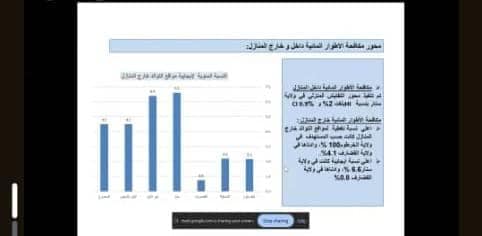 واورد تقرير صحة البيئة والرقابة على الأغذية، الأنشطة والتدخلات في المجالات المختلفة، مشيرا إلى تنفيذ حملة مكافحة نواقل الأمراض في( 12 ولاية-25 محلية).