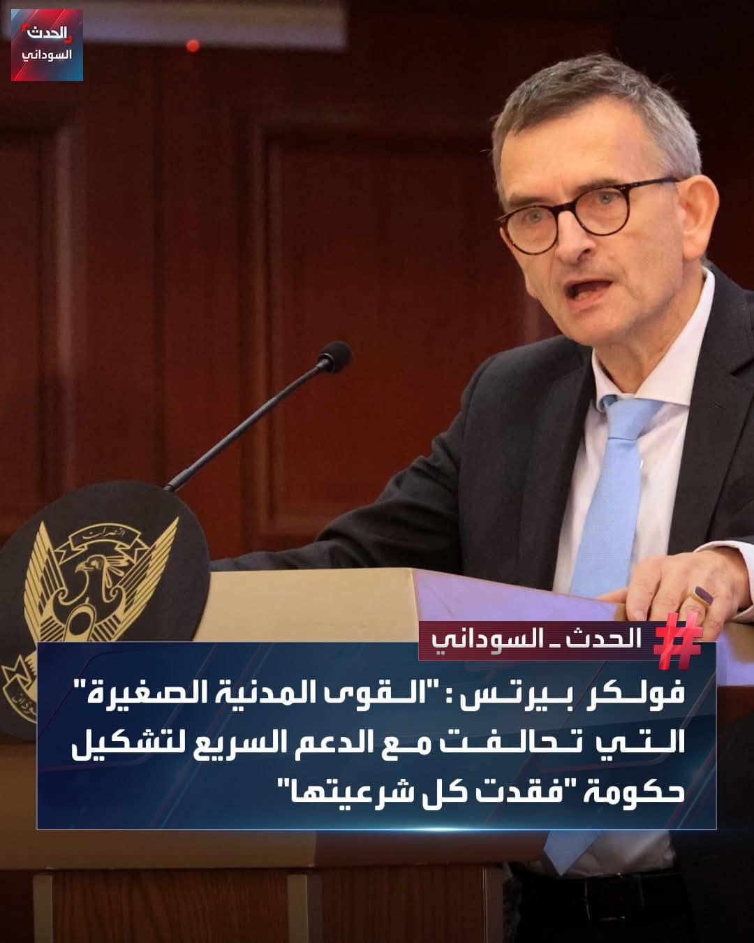 قال المبعوث الأممي السابق للسودان فولكر بيرتس، إن “القوى المدنية الصغيرة” التي شكلت مؤخرًا تحالفًا سياسيًا مع قوات الدعم السريع لتشكيل حكومة تحت سيطرة قوات الدعم السريع فقدت كل شرعيتها.