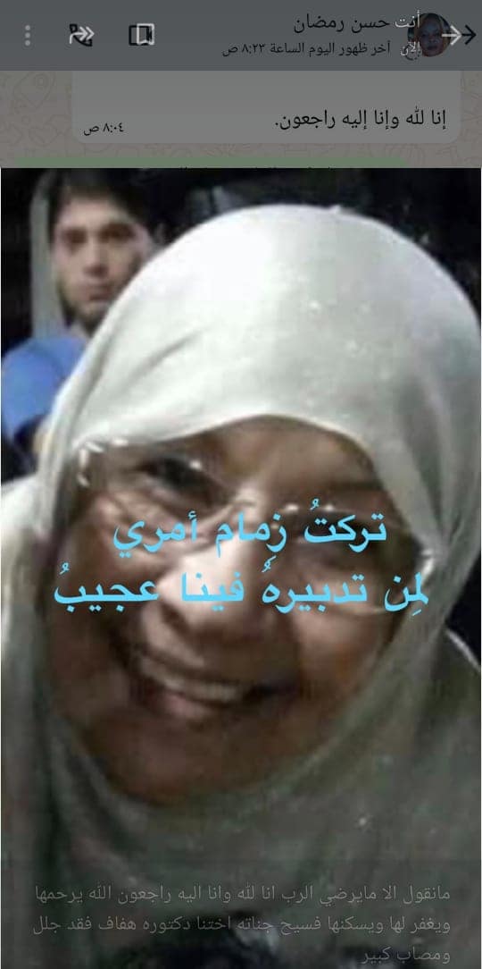 بقلوب مؤمنة بقضاء الله وقدره، تحتسب المدير العام لقطاع الصحة الوزير المكلف بولاية البحر الأحمر د٠احلام عبد الرسول عند الله تعالى د٠هفاف خالد خيري اختصاصي طب الأسنان والذي حدثت وفاتها امس