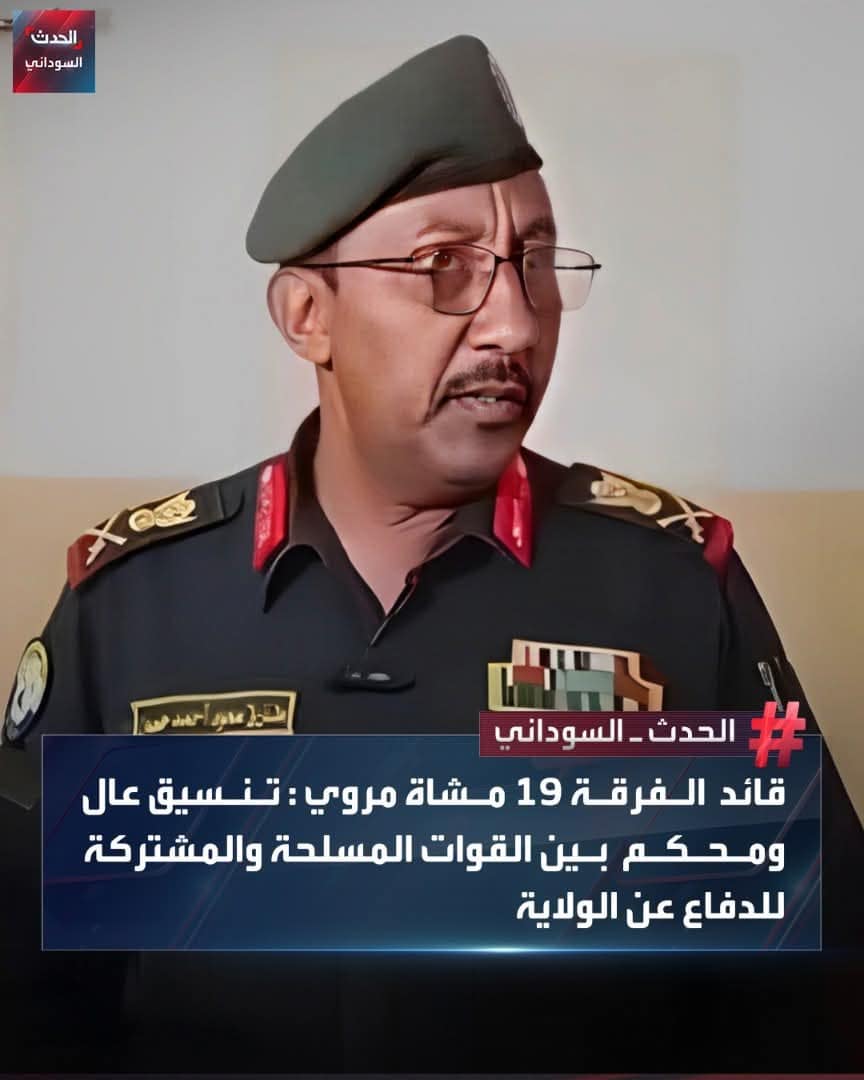 طمأن قائد الفرقة التاسعة عشر مشاة مروي اللواء ركن طارق سعود أحمد حسون المواطنين في الولاية باستقرار الأوضاع الأمنية، مبيناً أن القوات المسلحة والقوات المشتركة تعمل بتناغم تام وتنسيق عال ومحكم فيما بينها، مؤكداً جاهزية القوات مع المستنفرين للدفاع عن أرض وإنسان الولاية، داعياً لعدم الانجرار وراء الشائعات المغرضة التي تروجها جهات تهدف لزعزعة الاستقرار.