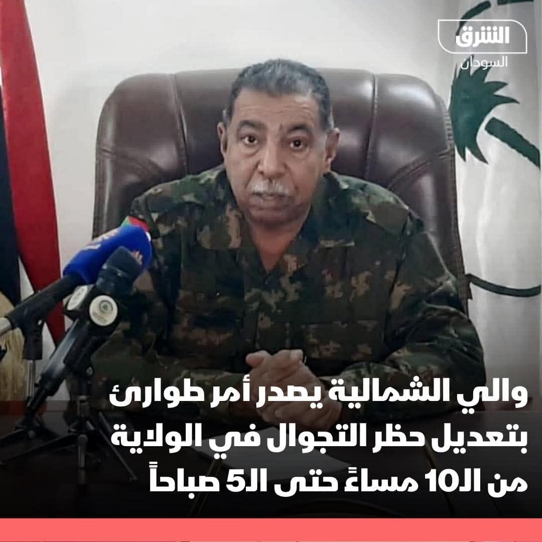 والي الولاية الشمالية عابدين عوض الله يصدر أمر طوارئ بتعديل حظر التجوال في الولاية من الـ10 مساءً حتى الـ5 صباحاً