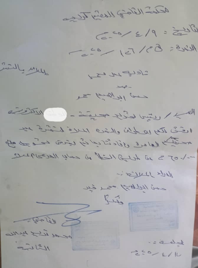 انت مكلف لحضور جلسة يوم ١٧/ ٤/ ٢٠٢٥م لنظر الدعوى الموجهة إليك من قبل / نادية عمر محمد .. بخصوص تحويل خطأ.. من الحساب بالرقم (3693390) الى الحساب بالرقم (3201661) بنك الخرطوم فرع كريمة فإن لم تحضر في هذا الميعاد او تعين لك وكيلا او تبدو عزرا شرعيا مقبولا سمعت الدعوى وحكم فيها في غيابك.