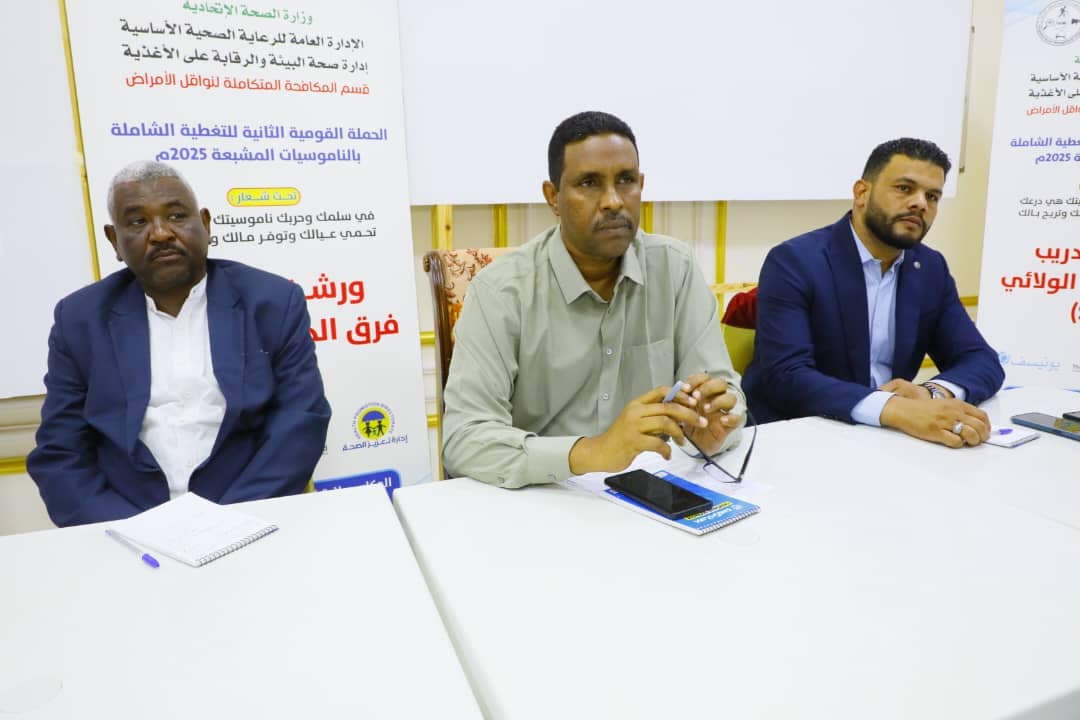 انطلقت صباح اليوم بقاعة الريح الطريفي بمدينة كسلا، ورشة تدريب فرق الدعم الولائي(sst) والتي نظمها قسم المكافحة المتكاملة لنواقل الأمراض بالصحة الاتحادية بالتعاون مع اليونيسف، صندوق الدعم العالمي وإدارة تعزيز الصحة الاتحادية.وذلك في إطار الحملة القومية الثانية للتغطية الشاملة بالناموسيات المشبعة 2025م.