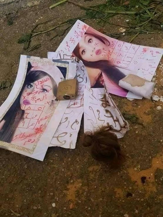 ومن داخل إحدى مقابر مدينة المشرية من ولاية النعامة، نشر ناشطون صورا لأغراض متنوّعة تمّ جمعها بعد استخراجها من باطن الأرض ومن بين القبور، بينها طلاسم مكتوبة بخطوط ورموز غريبة وخصلات شعر وملابس نسائية وصور أطفال ونساء ورجال، وبقايا عظام حيوانات وقطع قماش وبيض، وكلها أدوات استخدمت على ما يبدو في طقوس سحرية تهدف إلى الإيذاء.