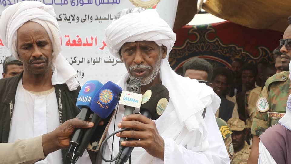 وذكر أن البعض يصنفهم بأنهم “شعب كل حكومة” وأن موقفهم نابع من مصالح شخصية ضيقة ولا يعرف أنهم من إبتدروا عمل الدفاع الشعبي والتدريب العسكري وأسسوا الكتيبة الإستراتيجية في أروما والتي دخلت مكرام في الهجوم على كسلا وكنت مرابطاً مع تلك القوة حفاظاً على وطننا العزيز وقال أرى اليوم أن هنالك تشابه في المواقف.داعيا المتمردين للجلوس على مائدة التفاوض إن كانت لهم قضية وطنية غير مرتبطة بالمشروع الخارجي. وذكر أن القيادة العليا للقوات المسلحة قدمت خيار الوطن على المصالح الشخصية الضيقة وأن دولار العمالة والإرتزاق ماضي بقوة في تأهيل الشباب وتدريبهم على مختلف الأسلحة والسلاح المعاون من داخل الأراضي السودانية وذكر أن نلتفت لآراء وتراهات الحيارى السكارى. وختم قوله بأن المقاومة الشعبية حققت نجاحات في مسارح العمليات الميدانية وأصبحت يد أمينة في محاربة المخدرات والمظاهر السالبة بدون مقابل