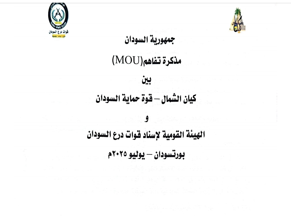 (خاص سودان 4نيوز تنشر مذكرة التفاهم بين كيان الشمال والهيئة القومية لاستاد قوات درع السودان*
