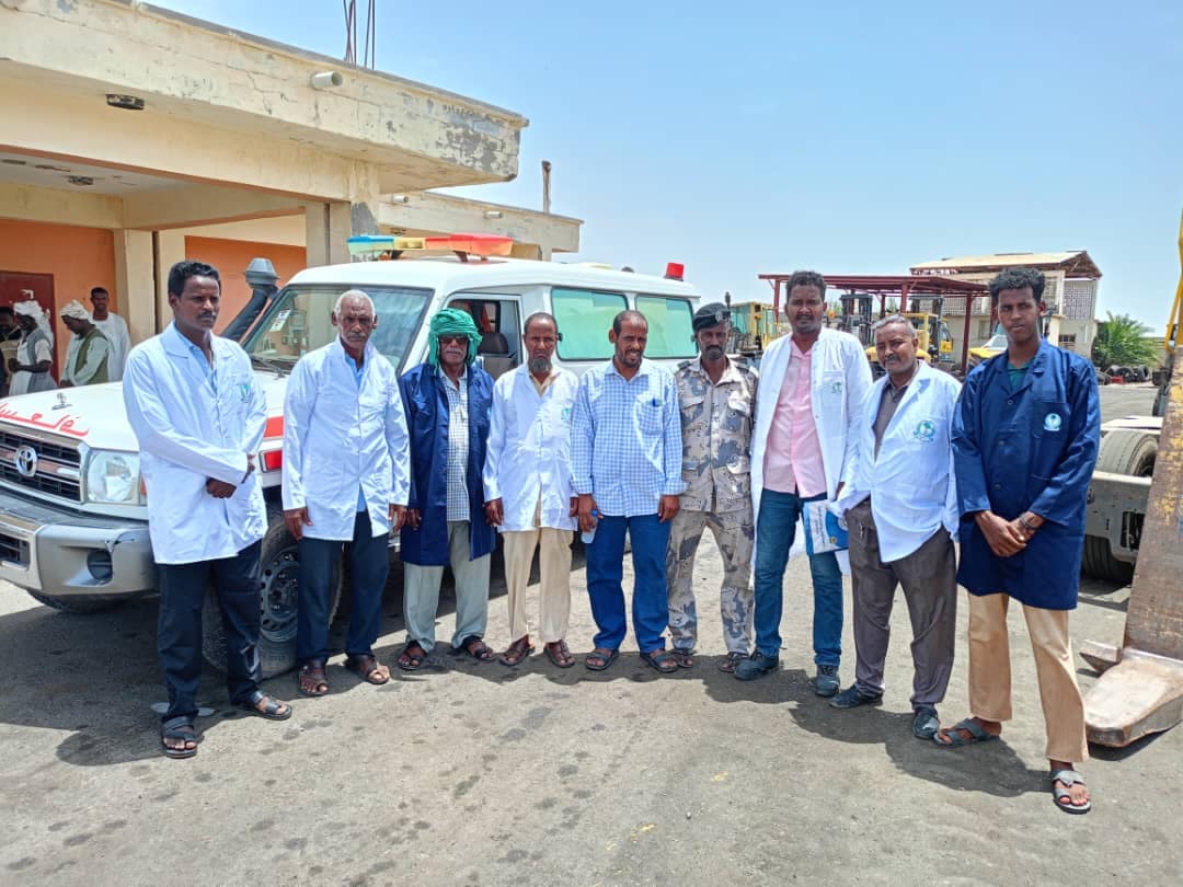 في ميناء سواكن اللجنةعلي مجمل الاوضاع الصحية بمحلية سواكن خلال زيارتها لمدينة اوسيف برئاسة علي منيناي و عضوية مصطفي موسي وكمال