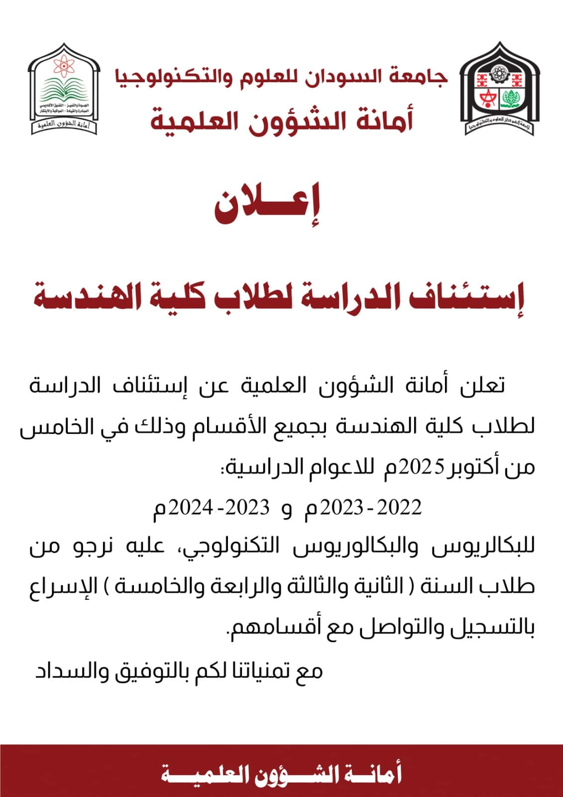 *إعلان مهم لطلاب جامعة السودان للعلوم والتكنلوجيا*