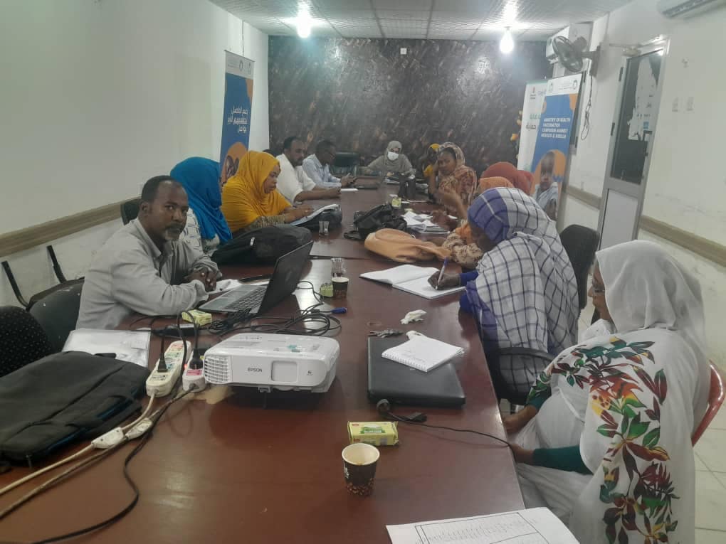 تراست مدير برنامج التحصين الموسع بقطاع الصحة بولاية البحر الأحمر ا٠سارة سيد محمود مساء اليوم اجتماع غرفة متابعة عمليات حملة التحصين بلقاح الحصبة والحصبة الالمانية اليومي لمتابعة سير الحملة خلال يومها الرابع الذي انتظم بقاعة إدارة التحصين ببورتسودان بحضور مشرف التحصين الاتحادي ا٠يس محمود وخبير التحصين بمنظمة الصحة الاتحادي د٠محمد الصادق ومدير تعزيز الصحة زينب صالح ووفد الإشراف الاتحادي والولائي