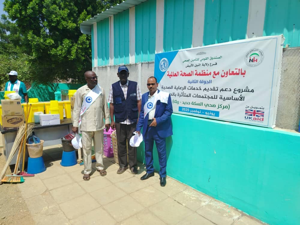 تسلمت وزارة الصحة والتنمية الاجتماعية بولاية النيل الأبيض صباح اليوم بمركز صحي السكة حديد بربك أدوات نظافة مقدمة من منظمة الصحة العالمية للمراكز المدعومة الجولة الثانية لمراكز وزارة الصحة والتأمين الصحي وذلك بحضور الأستاذ إسماعيل على يوسف مدير الطواري ومكافحة الأوبئة نائب المدير العام الوزير المكلف لوزارة الصحة و التنمية الاجتماعية والدكتور عبداللطيف ممثل منظمة الصحة العالمية