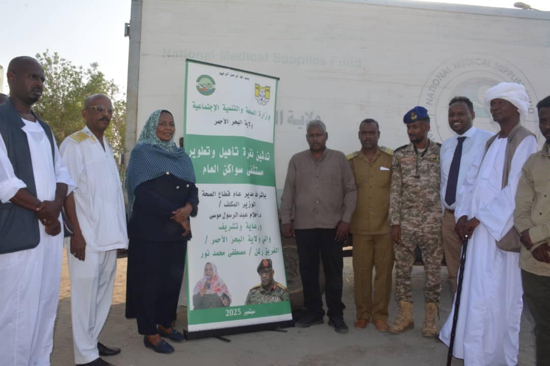 دشنت مدير عام قطاع الصحة المكلف د٠احلام عبد الرسول المعينات المعدات الطبية والصحية الخاصة بمستشفي سواكن العام في إطار مشروع نفرة تأهيل و تطوير المستشفي بحضور المدير التنفيذي لمحلية سواكن عادل ادم والمدير العام لميناء عثمان دقنة وأعضاء لجنة أمن المحليه والاعيان