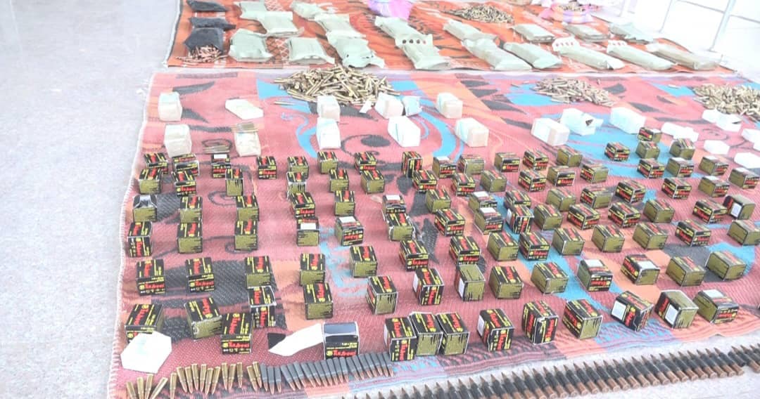 وشملت المضبوطات 30 ألف طلقة ذخيرة كلاشنكوف، و4 علب قنابل يدوية، و4300 طلقة قناصة، فضلاً عن مجموعة من الأدوية والحبوب المخدرة.