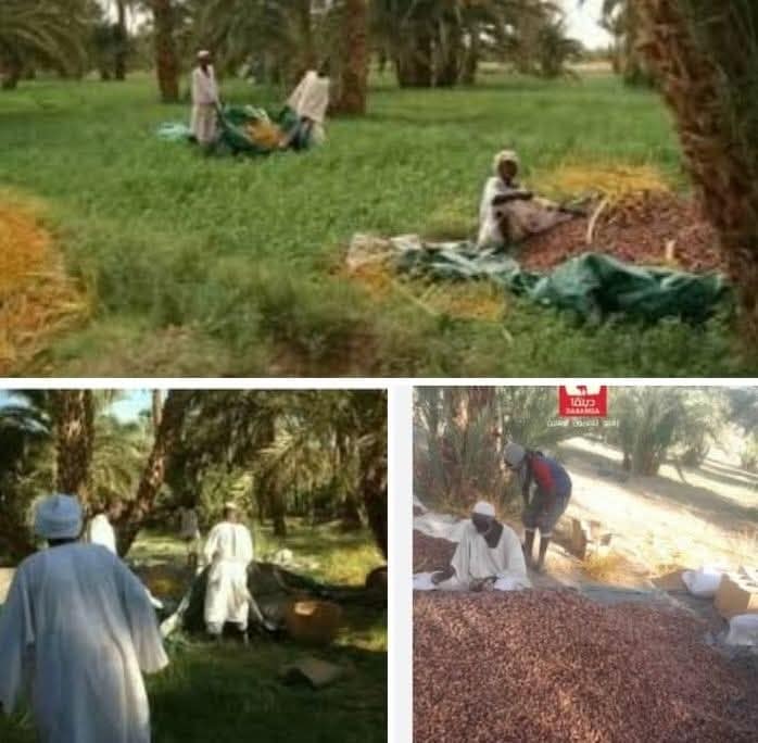 مجموعه لجمع حبات التمر التي تطايرت بعيدا.. وثانية تجمع سبيط التمر في كومه واحده لفصله عن العرجون… وأخرى تفتح اكياس التمر لتعبيتها وتخيط افواهها بسرح من عرجون النخل .. اما أحمد الابن الأكبر لمحمود كان عليه نقل اكياس التمر إلى البيت لفرز أنواعها ووضعها في أكوام لتجف تحت أشعة الشمس..