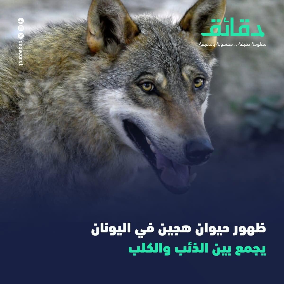🐺🐶 أعلنت منظمة “كاليستو” للحياة البرية عن أول حالة مؤكدة في #اليونان لحيوان هجين يجمع بين #الذئب و #الكلب، بعد تحليل جيني أظهر أن تركيبه الوراثي يتكون من 45٪ ذئب و55٪ كلب.