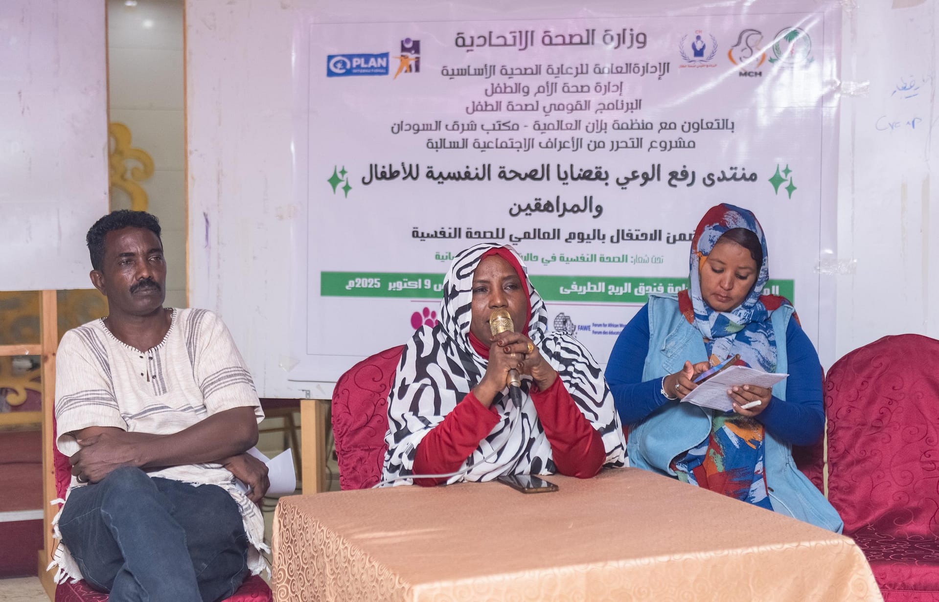 نظم البرنامج القومي لصحة الطفل بوزارة الصحة الاتحادية اليوم بقاعة الريح الطريفي بمدينة كسلا، وبالتعاون مع منظمة بلان العالمية – مكاتب شرق السودان، منتدى رفع الوعي بقضايا الصحة النفسية للأطفال والمراهقين، ضمن الاحتفال باليوم العالمي للصحة النفسية، تحت شعار(الصحة النفسية في حالات الطوارئ الإنسانية).