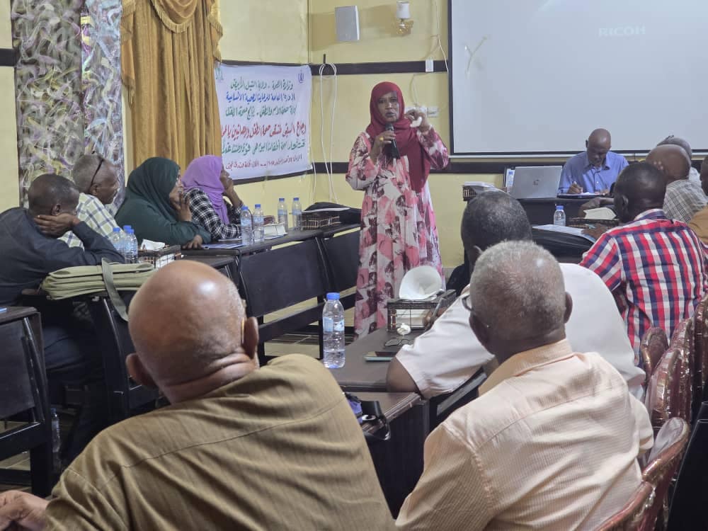 تراست الأستاذة اعتدال محمد عبدون مدير برنامج صحة الطفل بوزارة الصحة والتنمية الاجتماعية بولاية النيل الأبيض صباح اليوم بقاعة فندق نجف اجتماع منسقي صحة الطفل والاحصائين بالمحليات لتحسين خدمات صحة الطفل تحت شعار ( صحة أطفالنا اليوم هي قوة وطننا غدا).