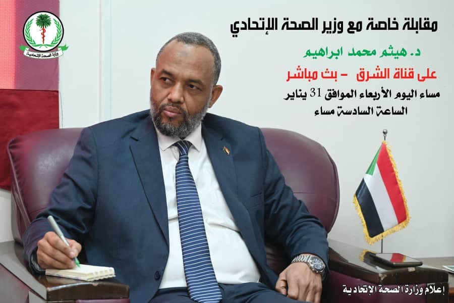 *وزير الصحة السوداني د. هيثم محمد ابراهيم علي قناة الشرق في السادسة من مساء اليوم*
