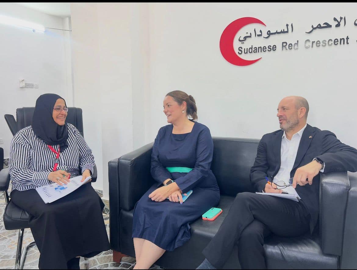 الأمين العام للجمعية رحبت بالوفد لزيارتهم جمعية الهلال الأحمر السوداني . و اطلعته على الأوضاع الانسانية بالبلاد والتحديات التي تواجه العمل الانساني سيما في دارفور وكردفان ومناطق النزوح فى الدبة بالولاية الشمالية .