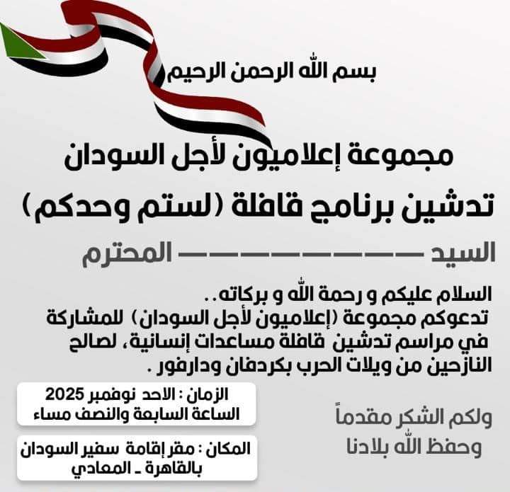 توافَقَت مجموعةٌ مِنَ الإعلاميِّينَ السُّودانيِّينَ على إطلاقِ مُبادرةٍ إنسانيَّةٍ تهدِفُ إلى دعمِ ومساندةِ النّازحينَ الَّذينَ تضرَّروا من اجتياحِ مليشيا آل دقلو الإرهابيَّةِ لمدينةِ الفاشر، واستقرُّوا بالولايةِ الشماليَّة، وكذلك نازحي كردفان الَّذينَ فرّوا مِن مُدنِهِم وقُراهُم بعدما غزَتْها المليشيا المُتمرِّدة.